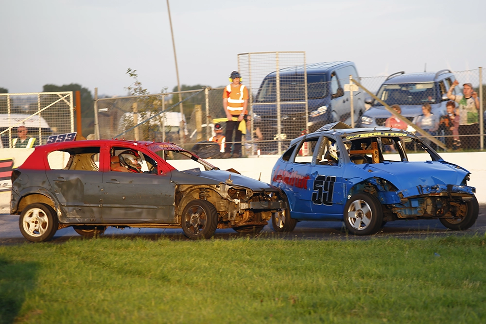 The name Banger conjures up an impression of heavy contact racing, and the 1600 Rookie Bangers are a hugely entertaining formula. At domestic DMC meetings, the formula race their heats to limited contact Rookie Banger rules designed to tempt you, the spectator, off the terrace and onto the track for the first time. The finals at each meeting are full contact 1600 Bangers rules!