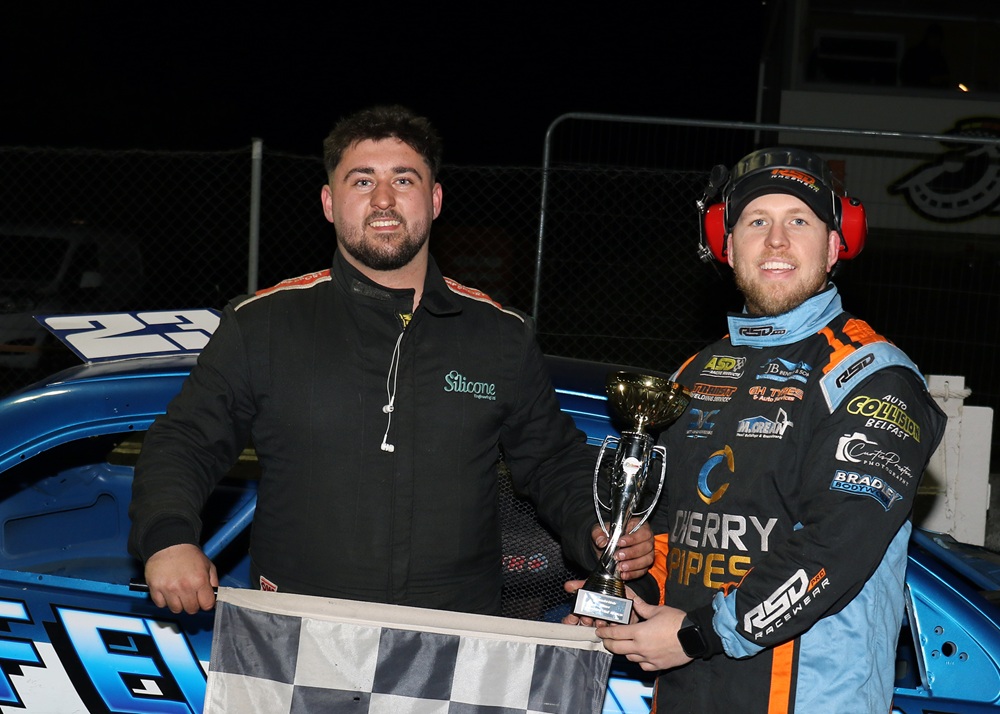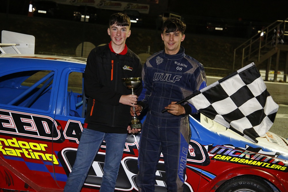 Completing the programme were the Thunder Rods, where Jason Darrgh took the opening heat win after first across the line Liam Wilson was penalised by the Stewards. Heat two saw Adam McMullan and newcomer Jack Gault clear out front until they hit fluid on the track and skittled into the wall, bringing out the yellow flags. At the resumption it was Joshua McMullan who took the lead and the win over James Goldie and Joe Largey.