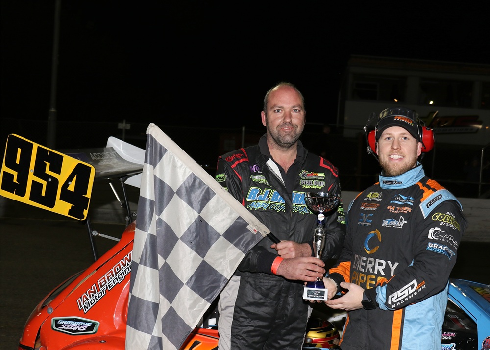 The reverse grid Irish Revenge race saw a win for McConkey despite the late attentions from Ty Richardson, before Greer completed the night with a win in the Allcomers race.