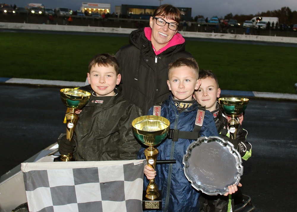 A thoroughly entertaining race meeting at Aghadowey Oval on Saturday night, October 11th, saw two excellent Irish Championship events topping the bill. Limavady’s World Champion Lucas Goligher took the win in a dramatic 1600 Rookie Bangers Irish decider, whilst Co Armagh’s Jack Murphy claimed victory in a keenly contested Ninja Karts Irish Championship. The support events saw a heat and final double for Richhill’s Rob Barnett in the 2.0 Hot Rods, Portadown’s World Champ Steven Haugh took a hat-trick in the Superstox and Limavady driver Liam Wilson also took a brace of wins in the Thunder Rods category.