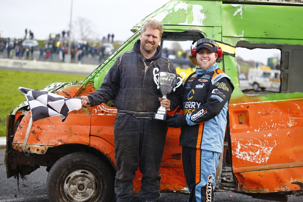 The destruction continued in the two Allcomers events, with Reynolds continuing his perfect day with victory in both races. There was action all around the raceway with some very crumpled vans indeed. The afternoon finished with the Destruction Derby, where McGrath claimed the silverware after destroying all in his path to be the last van moving. Stevo also claimed the Entertainer of the Day award, with Jack Bell being named Best Wreck for his mangled Transit.