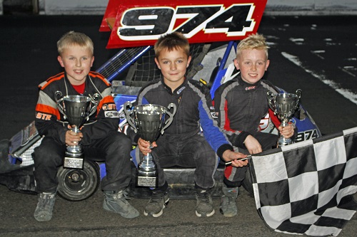 English visitor Jenson Fish joined the regulars in the Ninja Karts, with Riley Dawson-Stirling taking the opening heat win after the leaders all tripped over each other late on. Noah Teggart and Caolan Fegan chased him home. Sean Conway’s best showing so far looked set to see him take the second heat win, but he got badly baulked by a recovering backmarker on the very last bend, which allowed Dawson-Stirling through to take another win over Keegan Turtle and Fish.