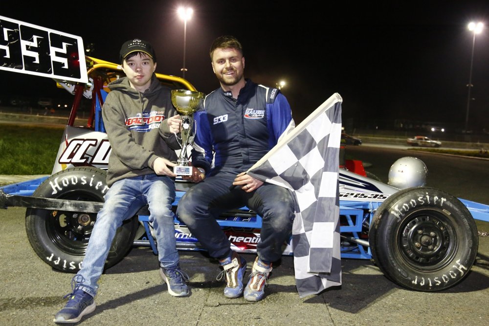 The feature race saw McNally out front early on before a caution period when Dilly became stranded on the home straight. At the restart McNally and Hylands tripped over each other, allowing McFarland through to the lead tracked by star man Wayne Woolsey. Woolsey slipped under McFarland to hit the front, and then held off a spirited challenge from James McKinney to take the win.