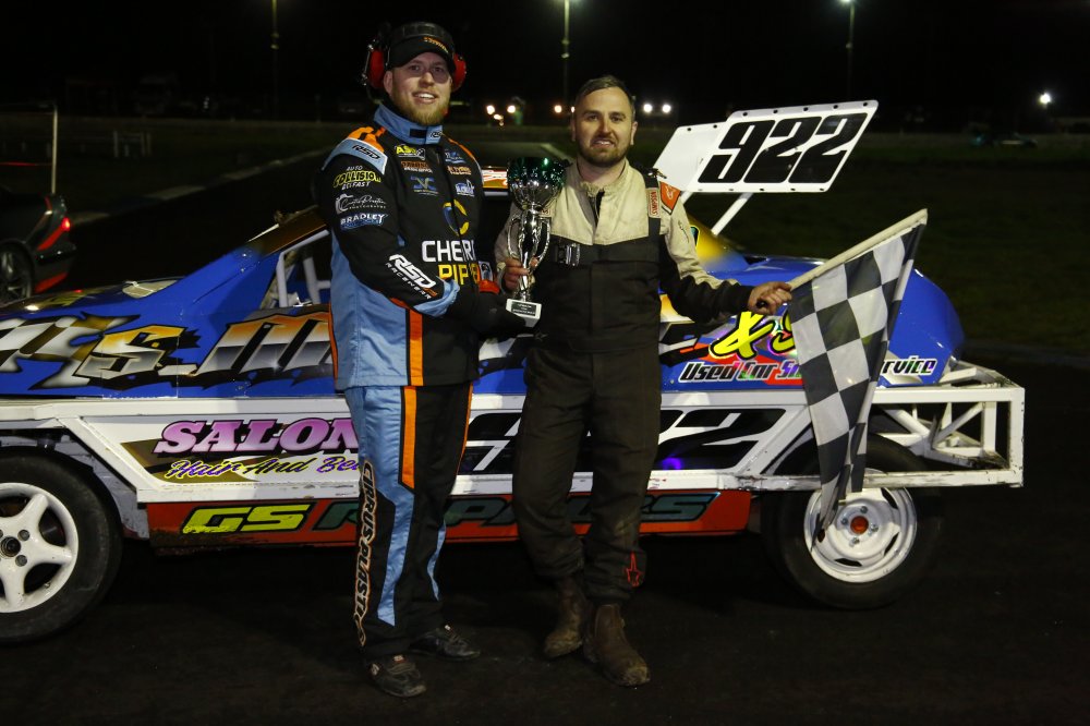 Stevo McGrath that grabbed victory in both Allcomers races, before young star of the future Jake Reynolds won the Stephen Bannon Memorial Destruction Derby.