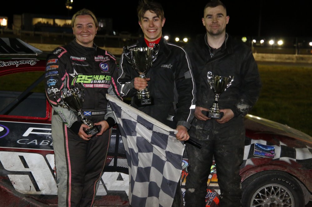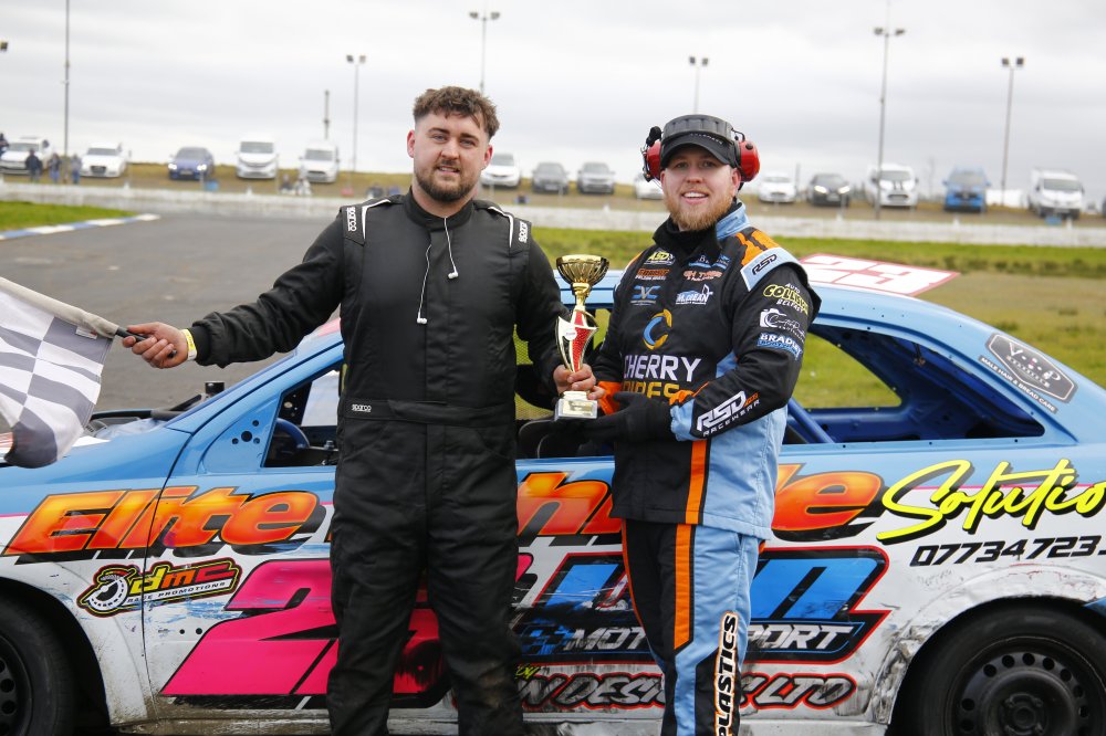 The pair once again closely contested the final, which was brought under caution at a time for a huge home straight rollover for Scottish lass Candice Smart. She emerged unscathed as battle resumed between the lead duo. Cherry once again bettered the lap record, but it was National and British Champion Hughes who took his second win of the night after a very impressive evening’s racing. Cherry, Noah Teggart and Keegan Turtle were next home.