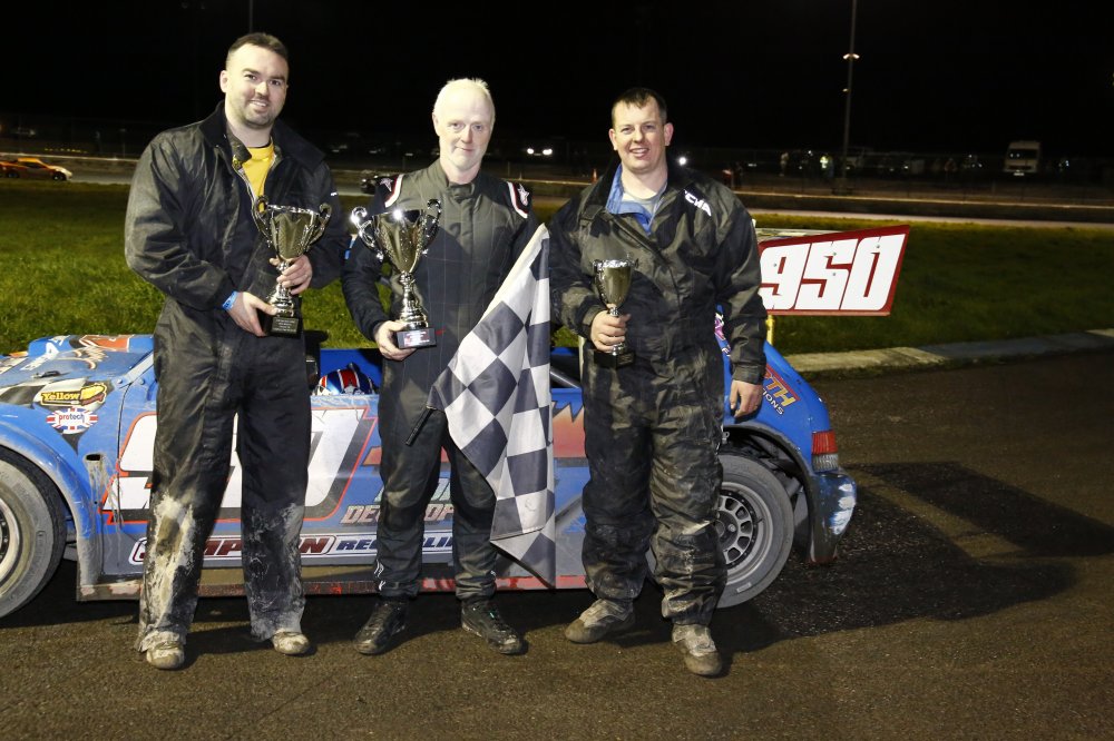 Completing the programme were the Lightning Rods, which saw a number of cars eliminated after a big crash early in the opening heat. Stuart Agnew took victory in that one, before the rest of the afternoon belonged to Ballymena man Mark McBurney. He led home Agnew and Keith Kirwan in heat two, before taking the feature race by a distance from Agnew and Tom Hewitt.