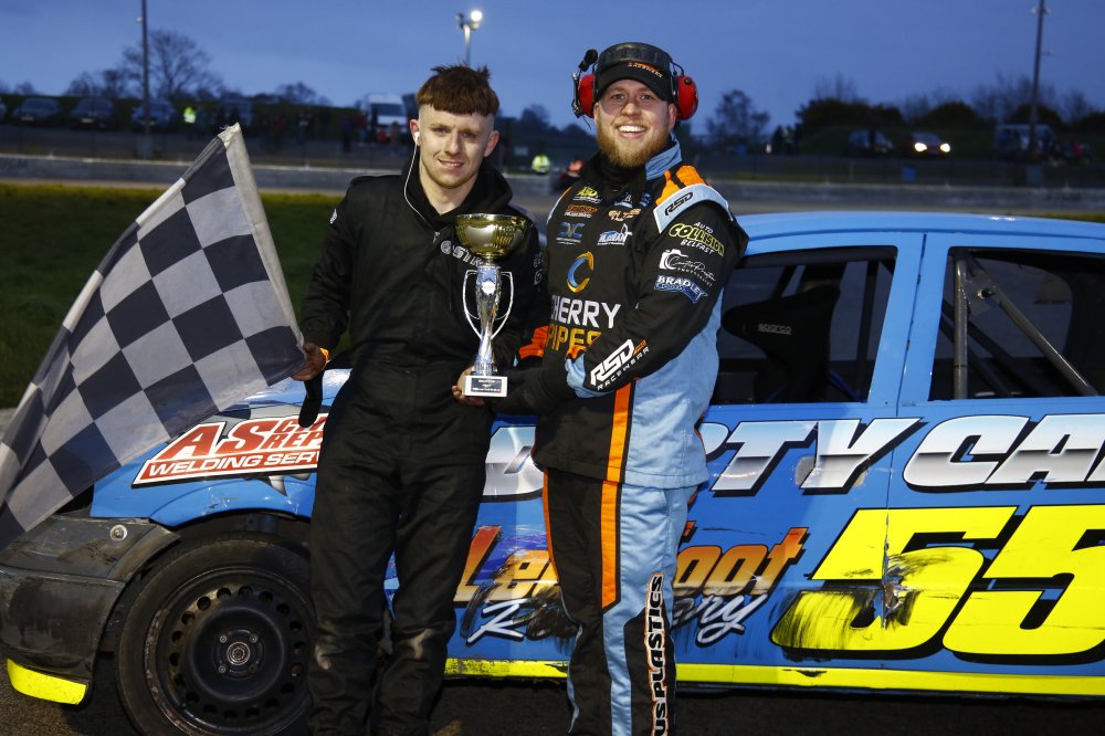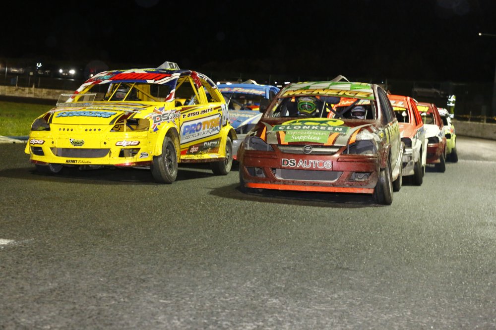 World Champion in the 1400 Stock Cars, Cullybackey’s Curtis Greer, showed great pace in his new car to land a heat and final double, whilst Glenavy’s Jamie Cardwell took victory in the competitive Stock Rods division. There was also a heat and final double for Antrim’s National & British Champion Leyton Hughes in the Junior Productions, with the final feature race of the evening falling to Limavady’s Liam Wilson in the well-subscribed Thunder Rods formula.