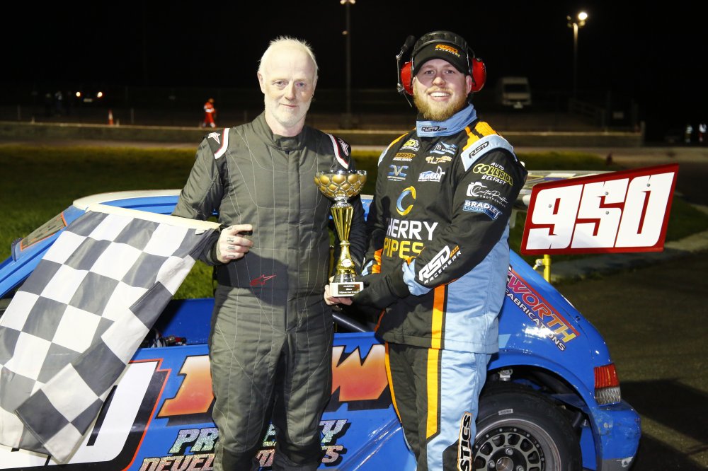 Having won the NI Open title on Easter Saturday at Tullyroan Oval, Randalstown Stock Rod ace Sam McNeice completed a dream weekend when he also tasted victory in the coveted Alan Connolly Memorial Trophy at Aghadowey Oval on Easter Monday.