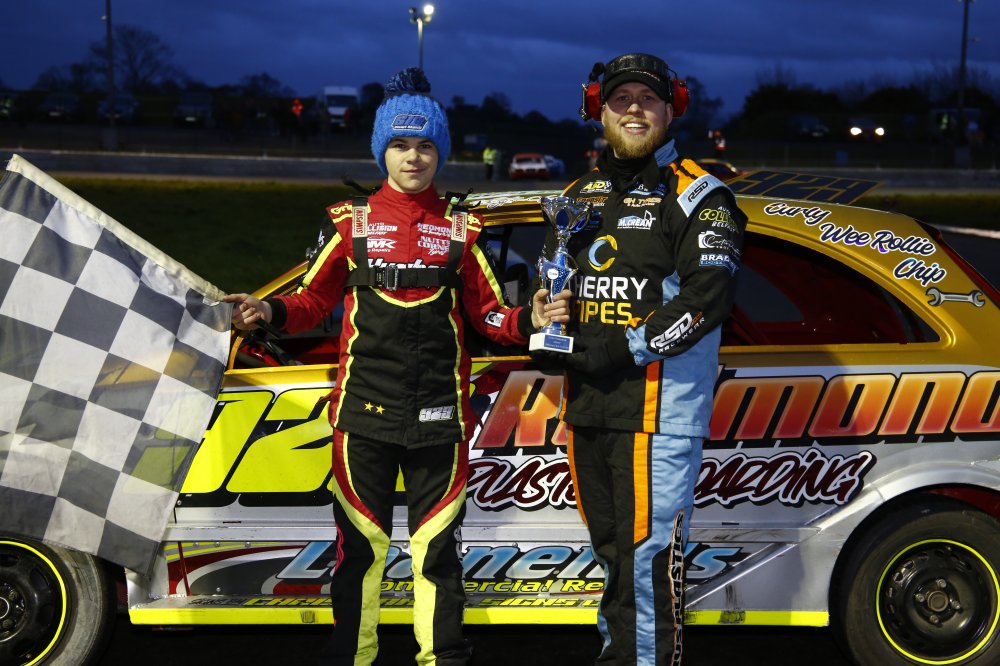 In the support formulas, 10-year-old Armagh lad Jack Murphy had a dream debut in the Junior Productions as he won the final, whilst the other feature race winners were Garvagh’s Dean Catherwood (Superstox) and Ballymena’s Mark McBurney (Lightning Rods).